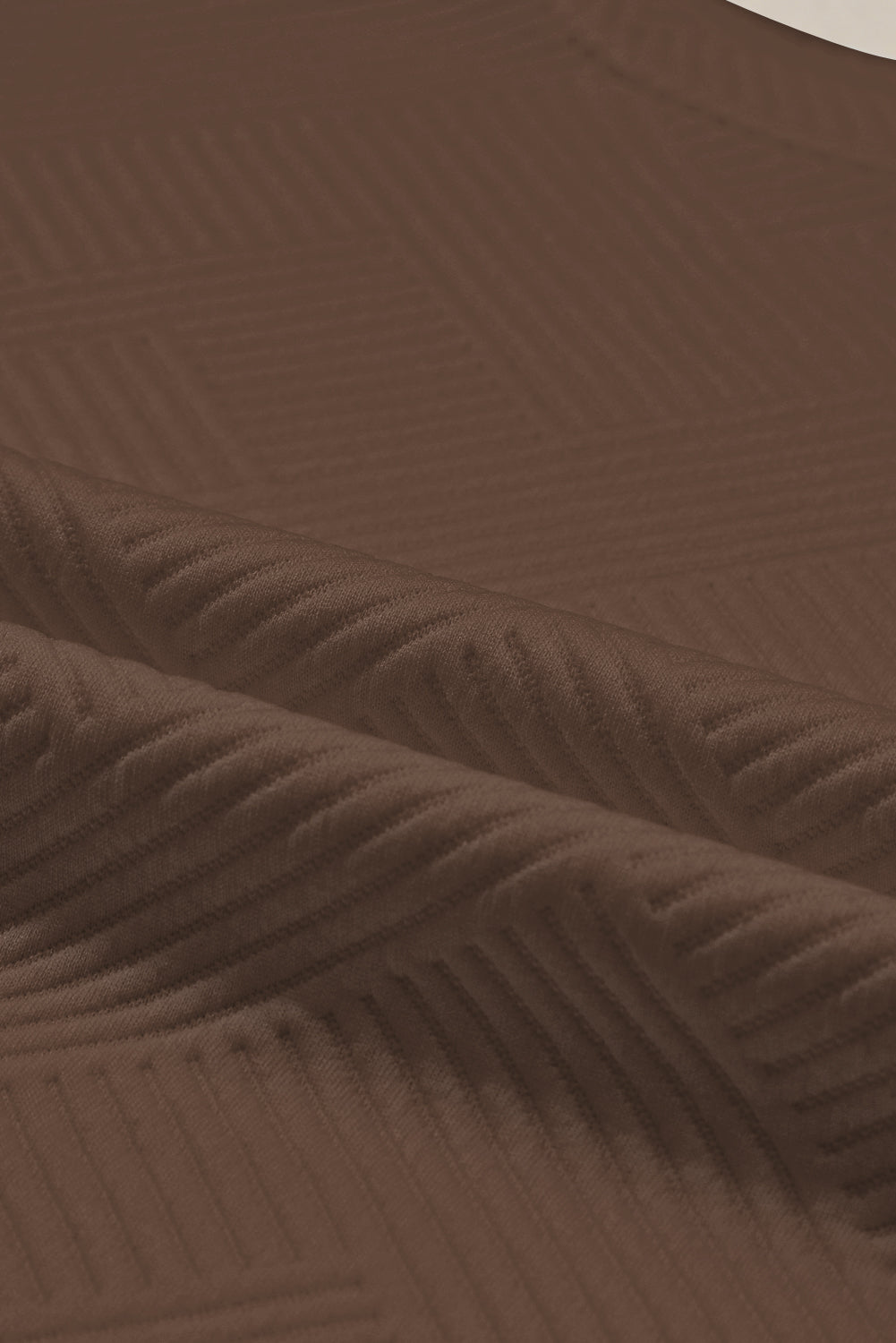 Ensemble Marron Foncé Texturé Ample Décontracté Haut à Manches Longues et Pantalon